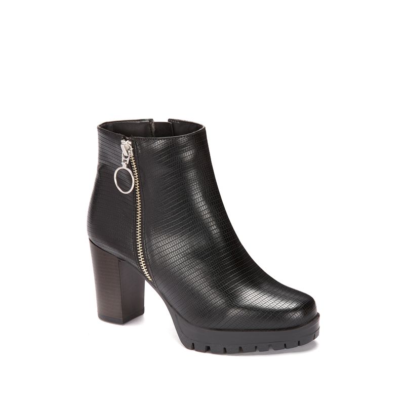 El acabado texturizado en su parte superior hace que este botín sea una pieza única y atractiva para cualquier look, mientras que su cierre lateral asegura que puedas ponértelo y quitártelo con facilidad.