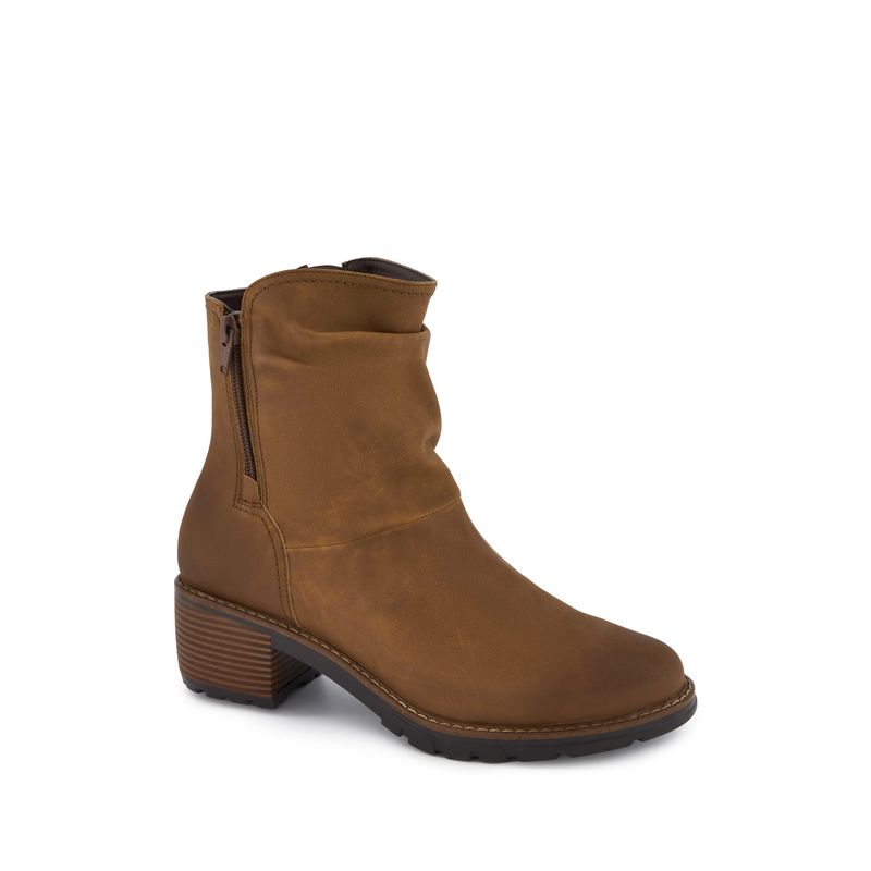 Este botín casual de Andrea para mujer, con pliegues y cierre lateral en color café, es una opción elegante y versátil para complementar tus conjuntos casuales con un toque de estilo distintivo.