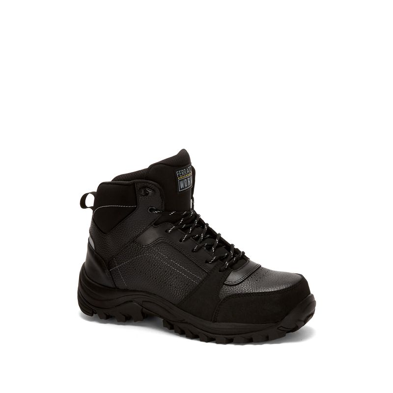 Este botín de piel profesional Ferrato, con un diseño triple ancho, es la elección perfecta para aquellos que buscan comodidad y estilo en su calzado laboral.